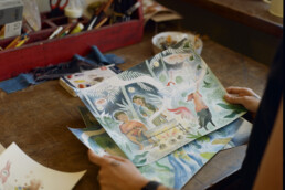 It took a couple years, but after a while, I was constantly working and experiencing some success, landing a lot of dream jobs. I did some public art, commercial freelance work, and gallery shows. I did murals, and I had my first children’s book. Then my husband and I decided to have children and that changed everything. And now, two kids later, I’m approaching the other side of that. My kids will both be enrolled in school this Fall, and I’ll be returning to my studio full time.