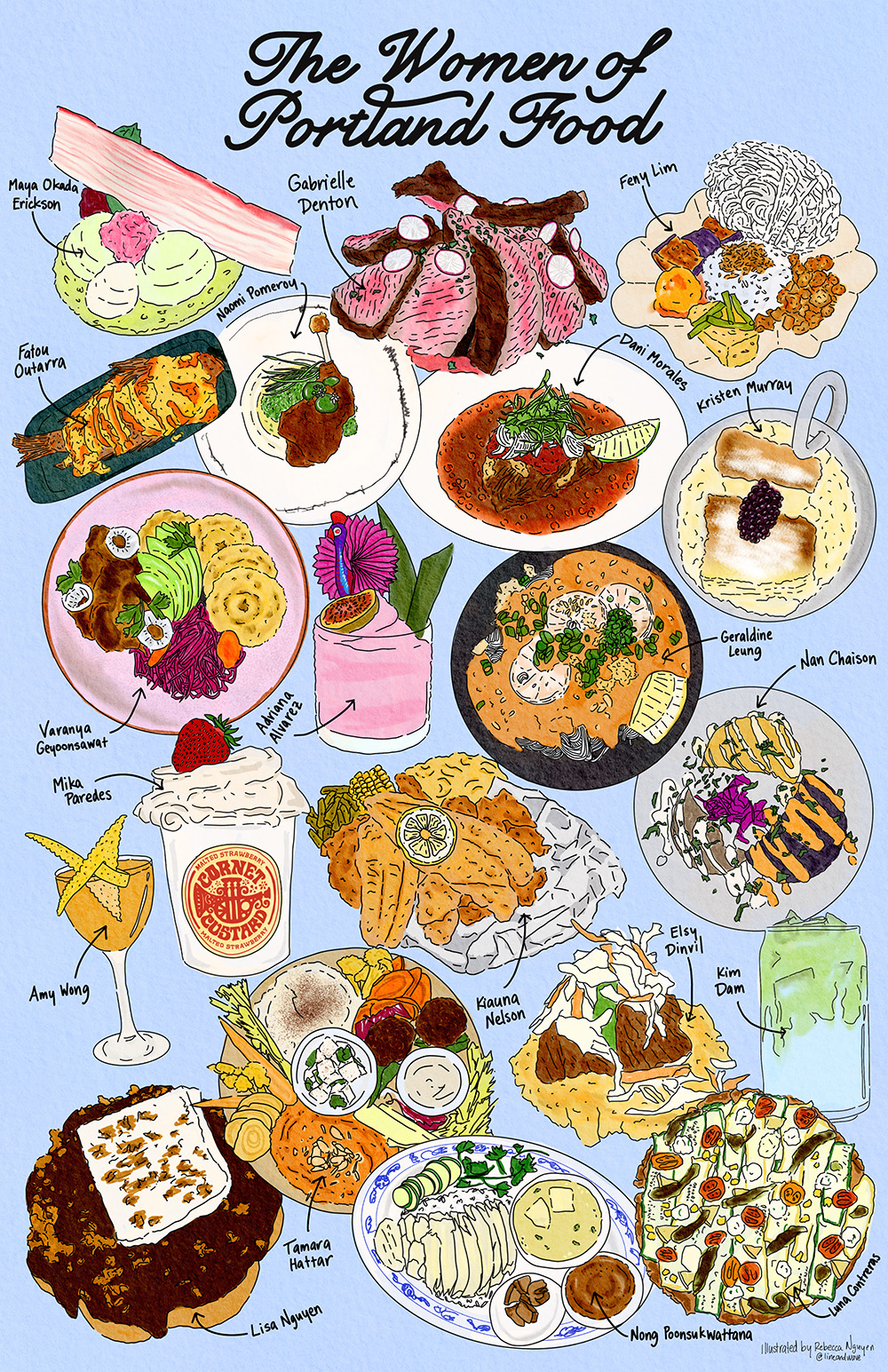 Limited edition 11×17″ print of The Women of Portland Food by Rebecca Nguyen. Printed locally at Paperjam Press.